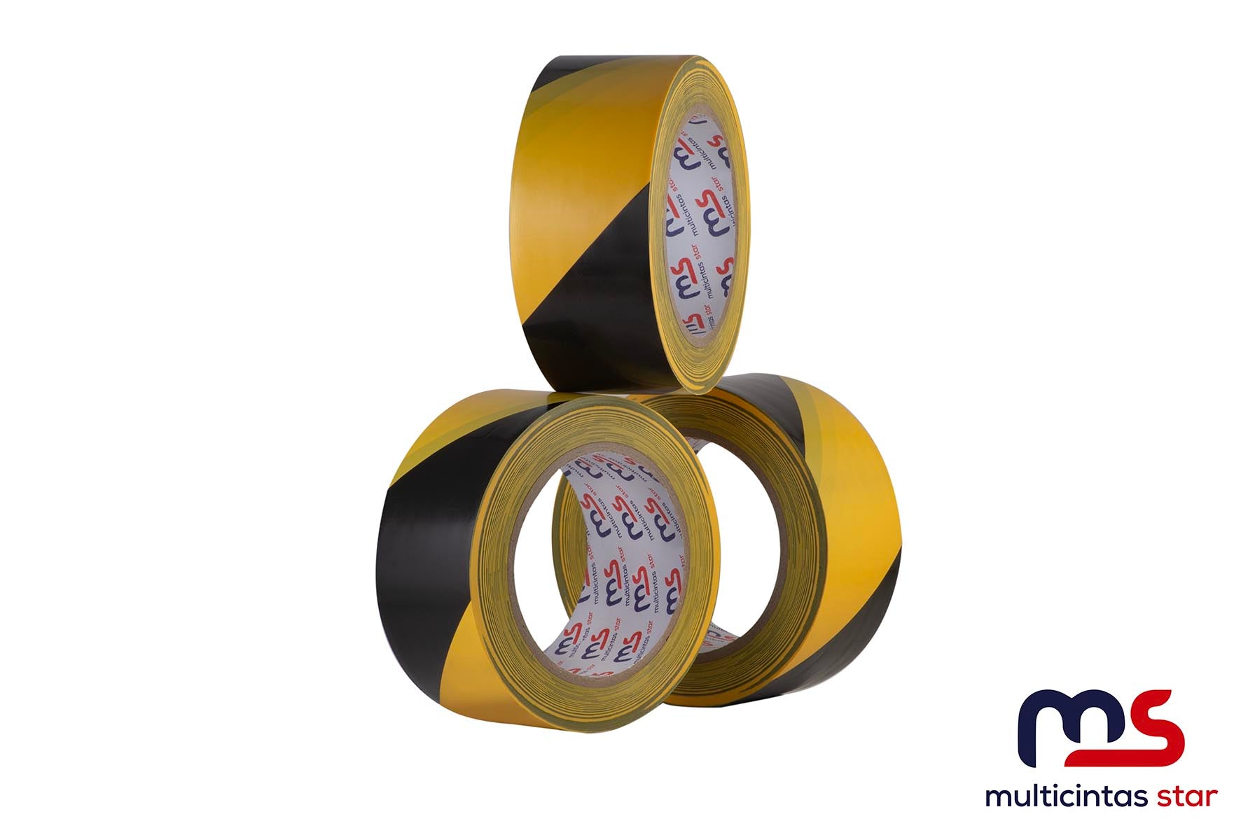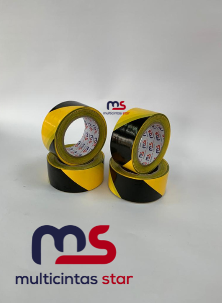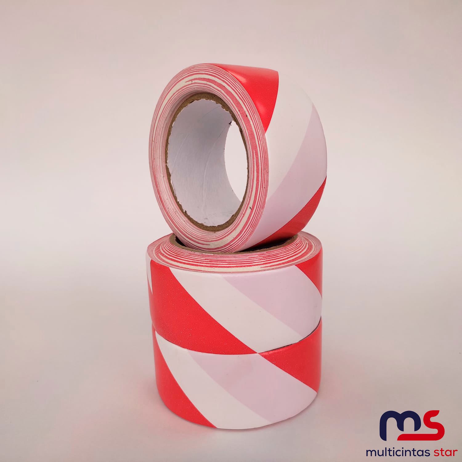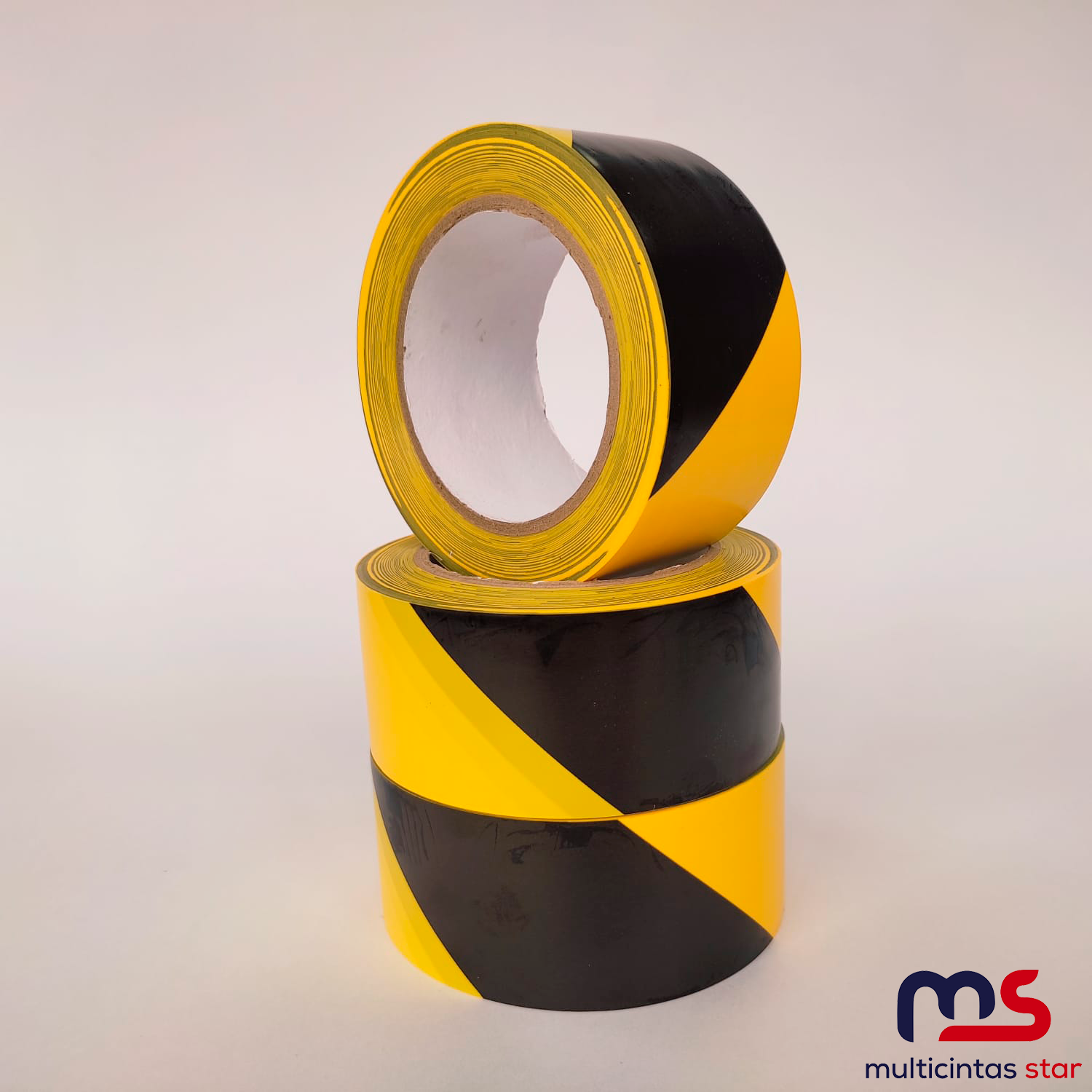 Cinta adhesiva de señalización usada para la demarcación de pisos, puertas, vidrieras, entre otros.