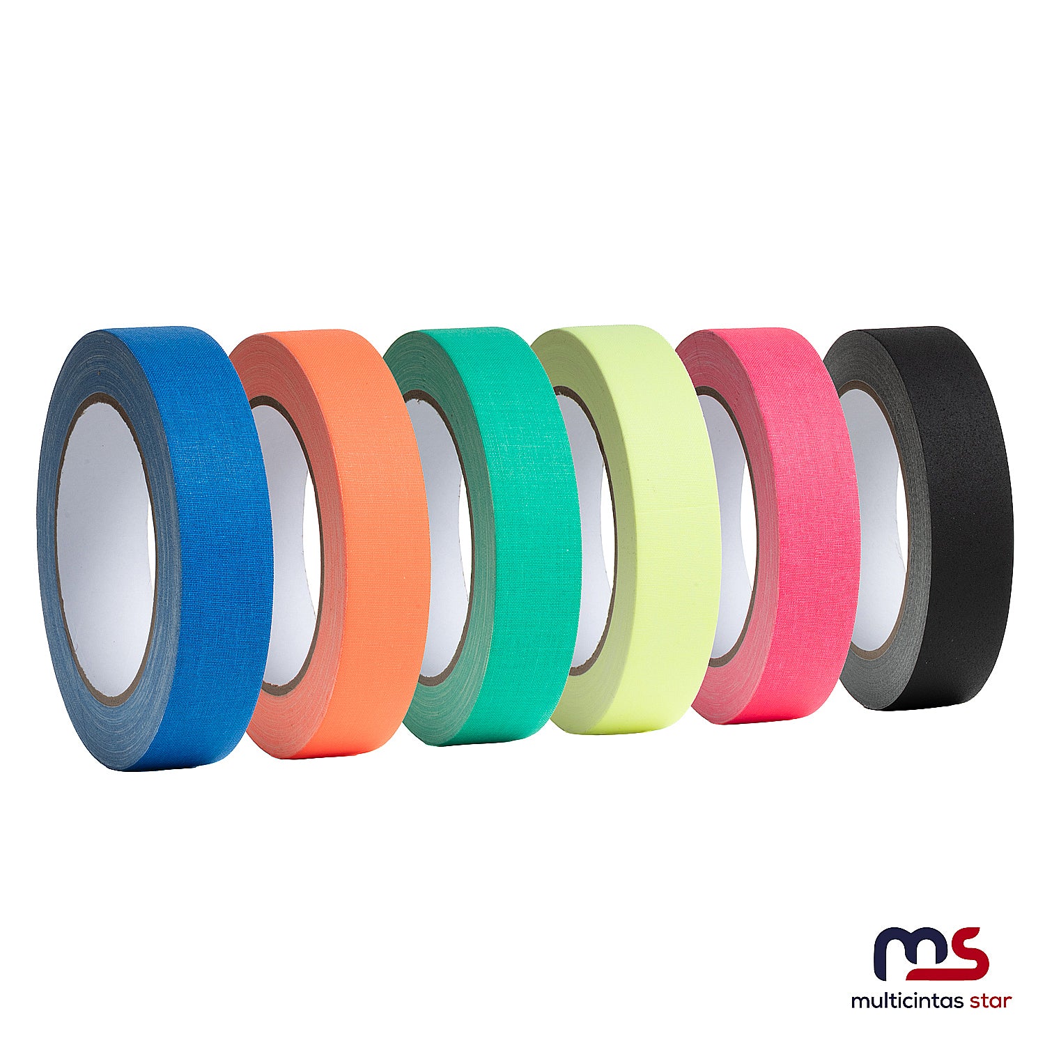 La cinta adhesiva Fluorecente Gaffer de tela impermeable y fácil de rasgar a mano.