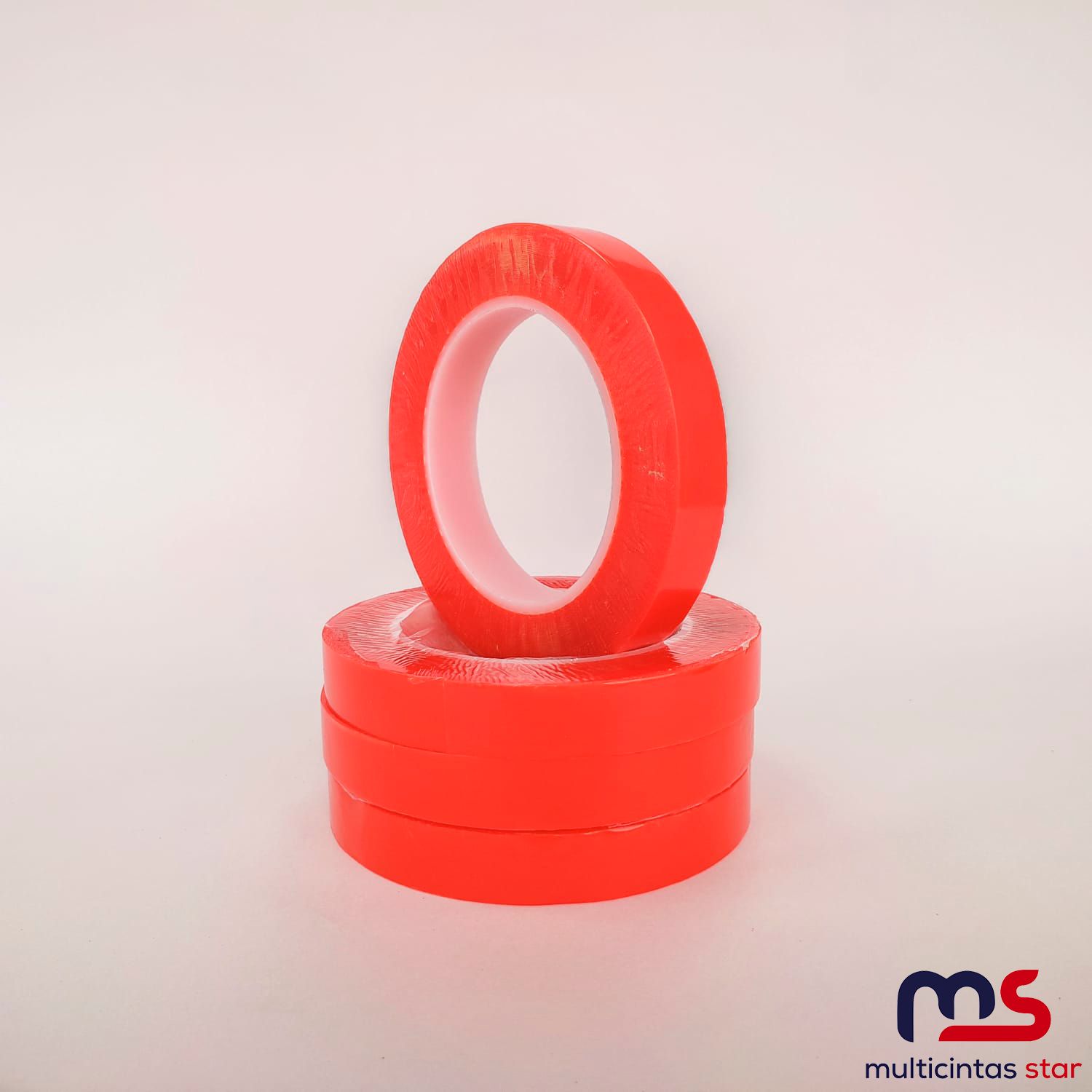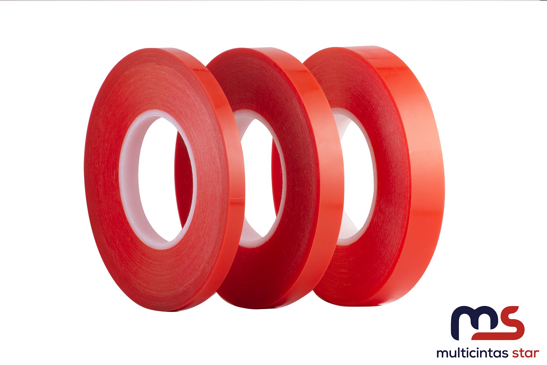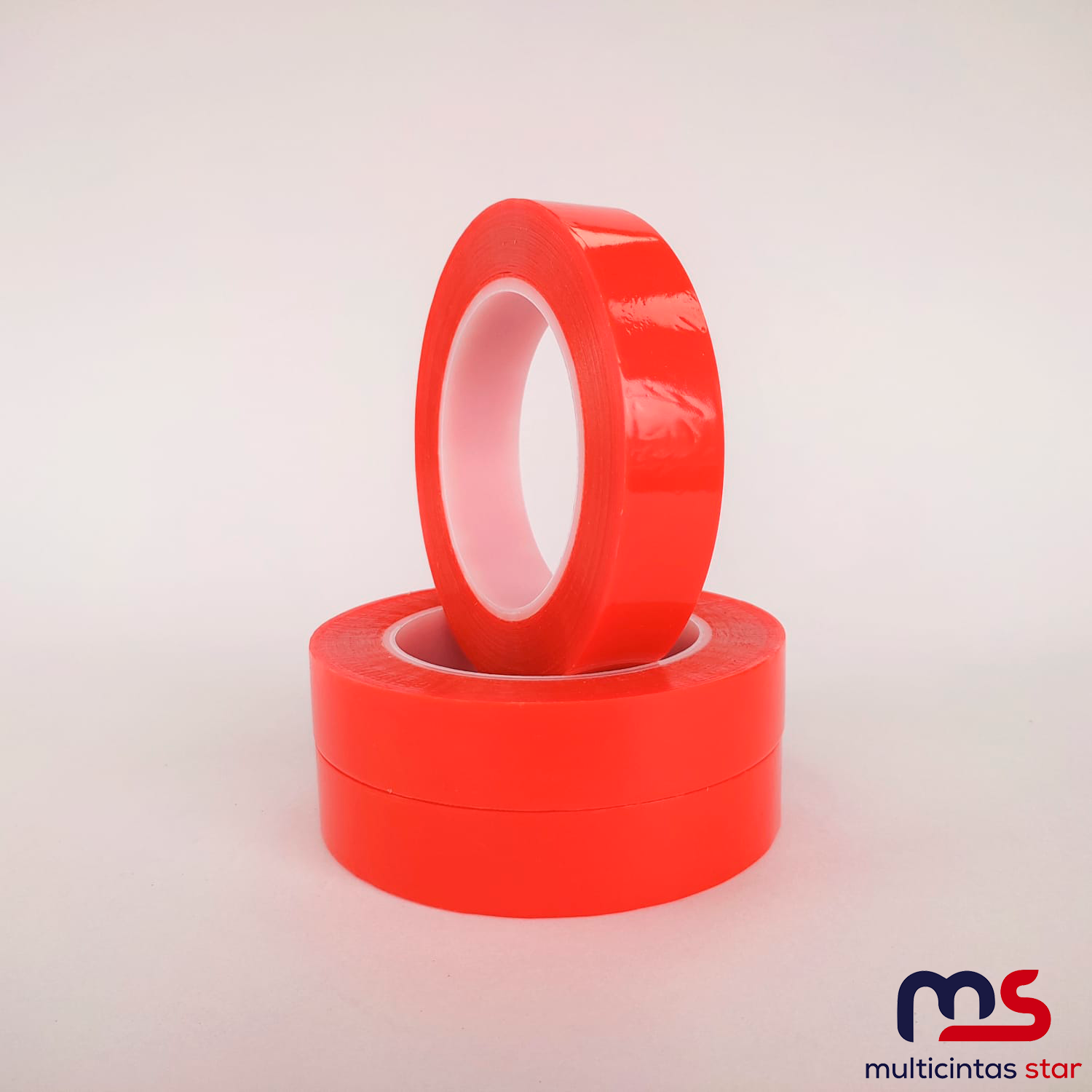 La cinta de PET de doble cara se compone de un respaldo de poliéster recubierto por ambos lados con un adhesivo modificado translúcido.